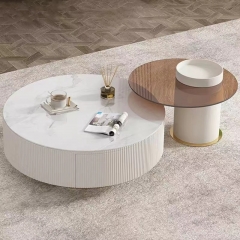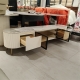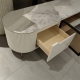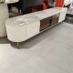 钛金五金脚+密度板烤漆+亮光岩板+茶色玻璃