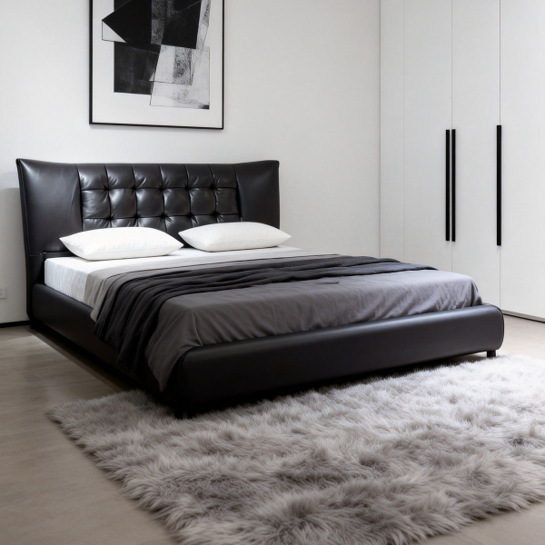 中厚头层牛皮接触面+海绵软包+实木内架+10公分钢木排骨架+5公分脚